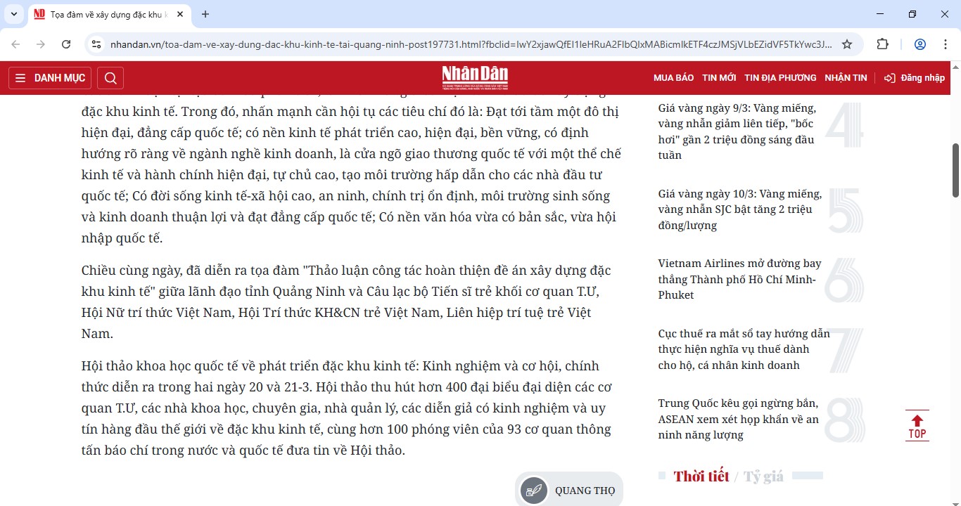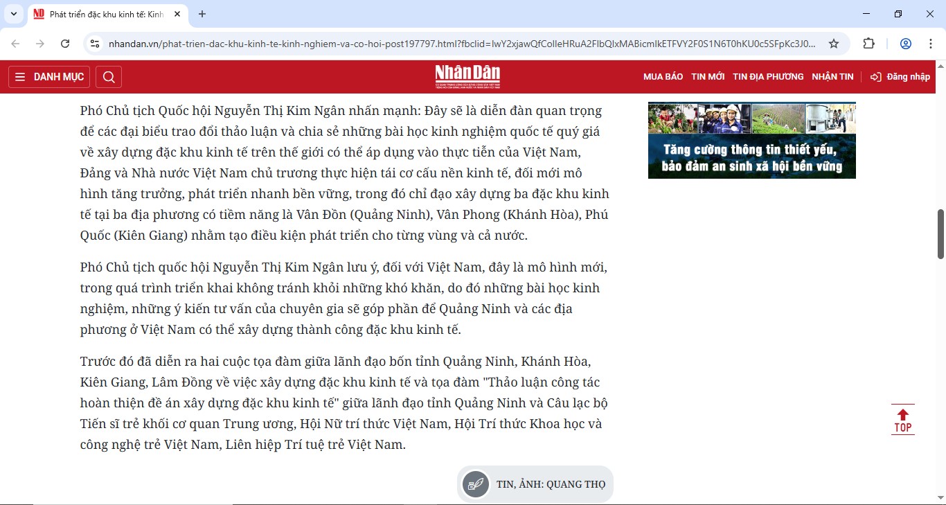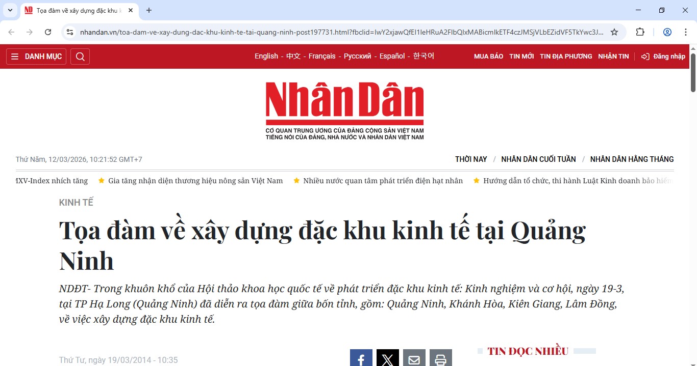Báo Nhân Dân: Tọa đàm về xây dựng đặc khu kinh tế tại Quảng Ninh