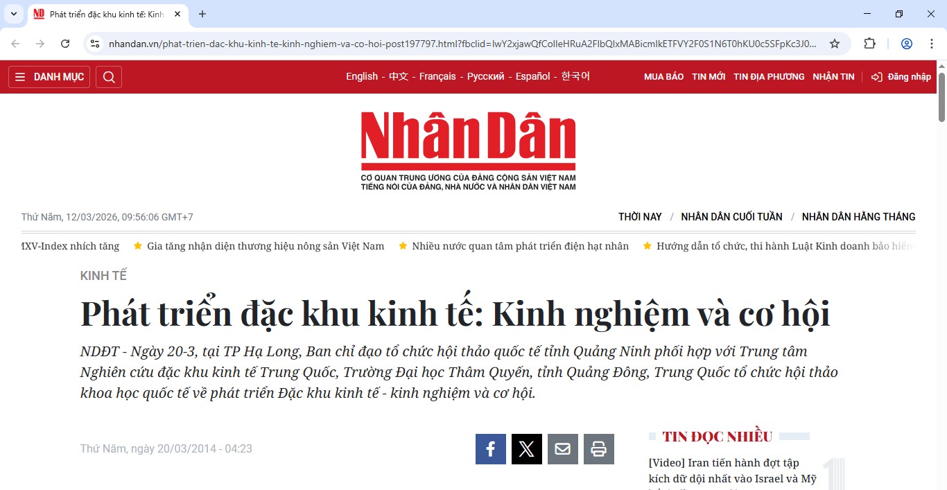 Báo Nhân Dân: Phát triển đặc khu kinh tế - Kinh nghiệm và cơ hội