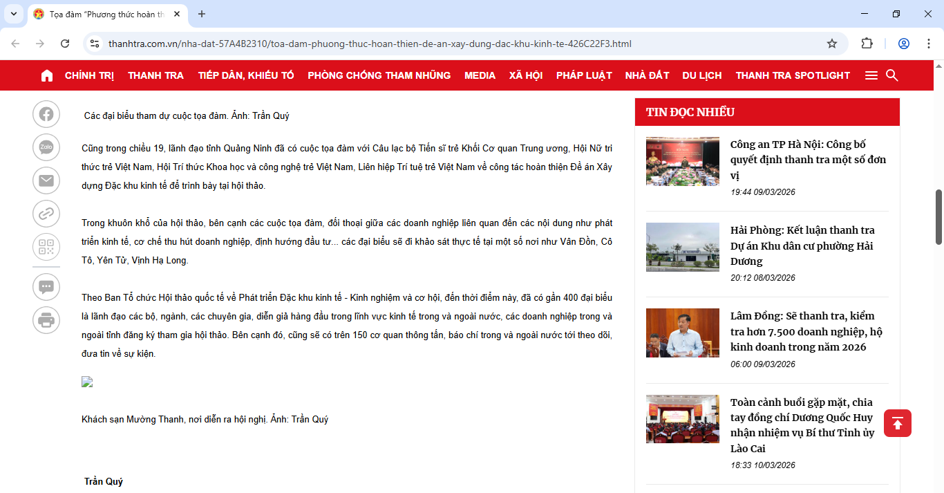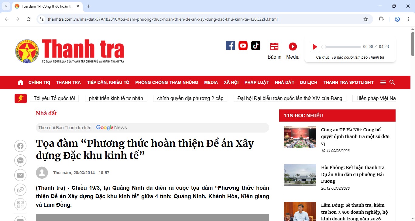 Báo Thanh Tra: Tọa đàm “Phương thức hoàn thiện Đề án Xây dựng Đặc khu kinh tế”
