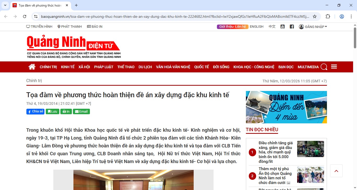 Báo Quảng Ninh: Tọa đàm về phương thức hoàn thiện đề án xây dựng đặc khu kinh tế