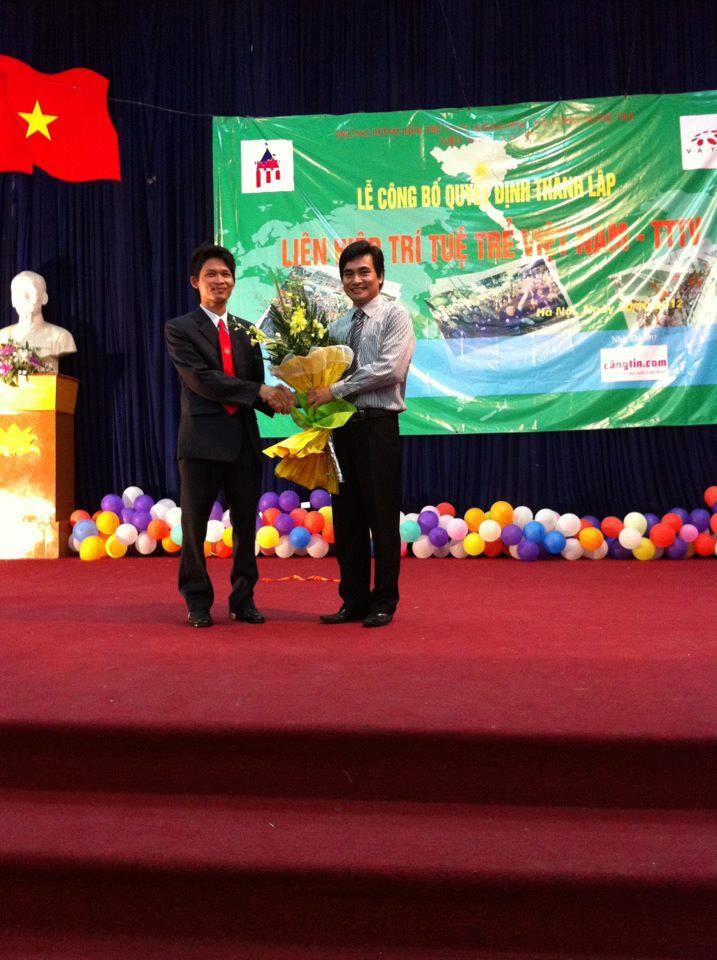 Đồng chí Bùi Văn Dũng - Phó Chủ tịch Liên hiệp Trí tuệ trẻ Việt Nam và đồng chí Nguyễn Đồng Long - Ủy viên Ban Chấp hành Trung ương Đoàn TNCS Hồ Chí Minh tại Lễ công bố quyết định năm 2012.