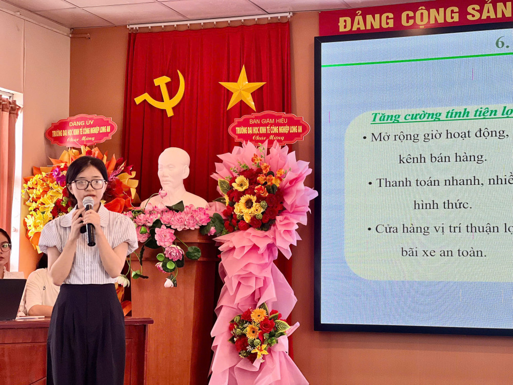 Hội nghị ghi nhận 15 đề tài nghiên cứu thuộc nhiều lĩnh vực như kinh tế, quản trị, tài chính - ngân hàng, công nghệ thông tin và môi trường. Các nhóm sinh viên trình bày kết quả nghiên cứu, nêu bật tính ứng dụng thực tiễn và khả năng đổi mới sáng tạo trong từng đề tài.